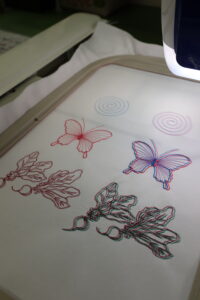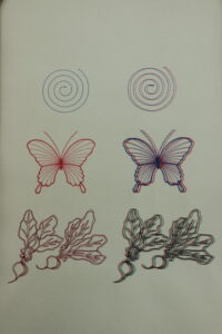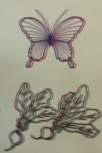 2025年10月13日 2本針 普段薄い生地でピンタックを作ったり 模様縫いを二重で楽しんだりする2本針。 刺しゅうをしてみました。 とてもおもしろい感じになります。 針が針板に当たらないか注意が必要です。 あのメガネで見てみたい。