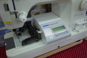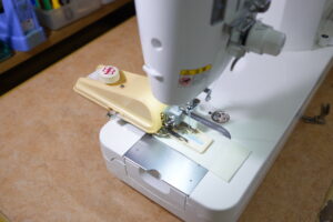 ボタンホーラーが生地を上下左右に動かしてくれます。